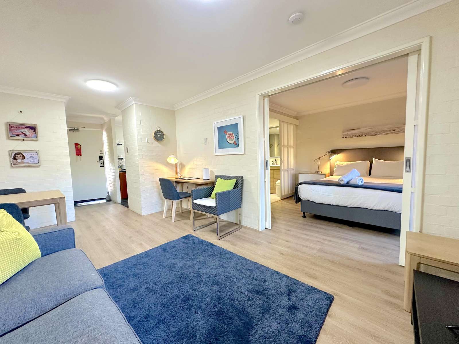 Accommodation consists of a queen bed, ensuite bathroom, sofa bed in the lounge suitable for a child, kitchen and laundry. There is parking for one car. Free WiFI.