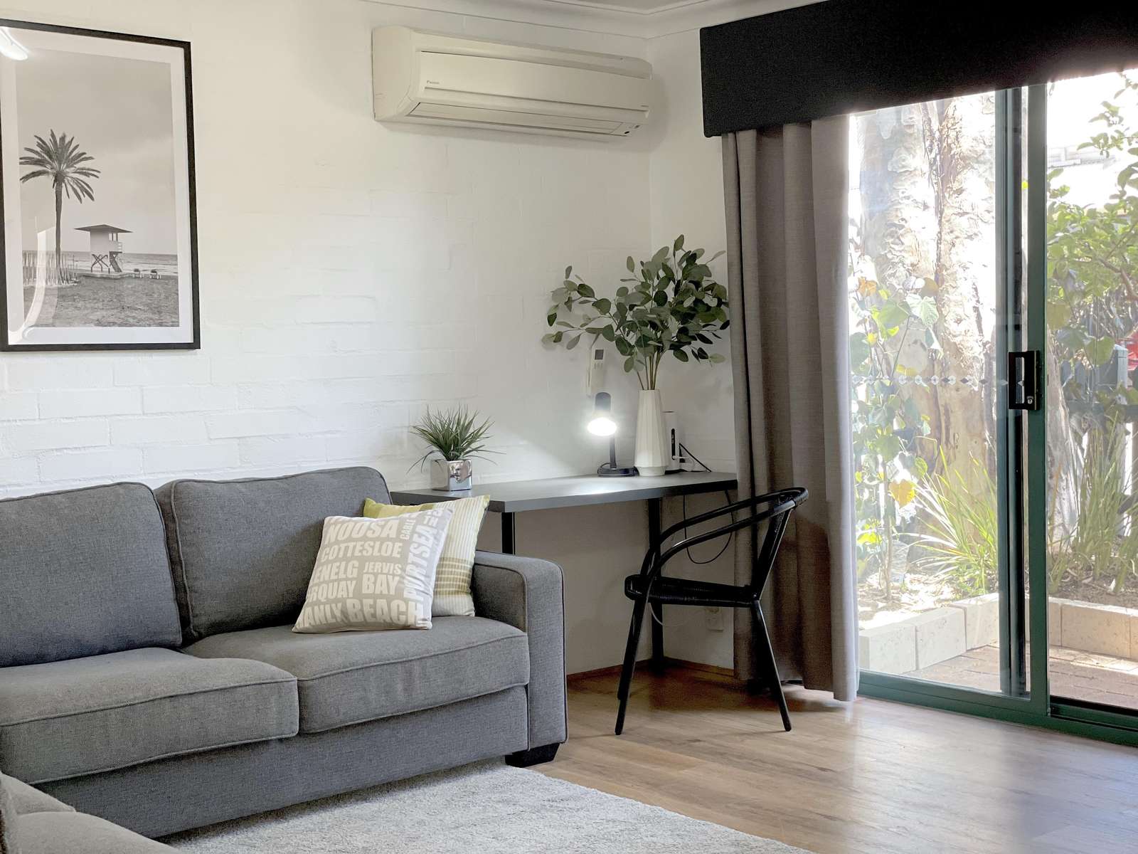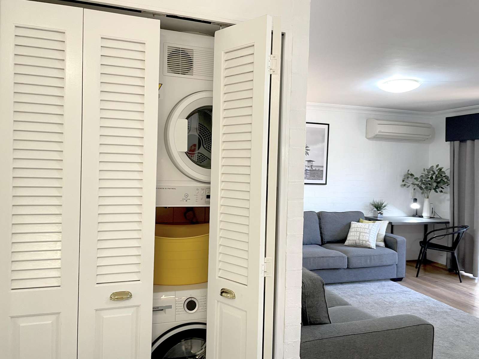 Accommodation consists of a queen bed in the master bedroom and twin beds in the very roomy second bedroom plus a sofa bed in the lounge. There is a small alfresco area outside, with a larger shared BBQ alfresco area at the swimming pool (within season). Internal laundry comes with a washer and dryer.